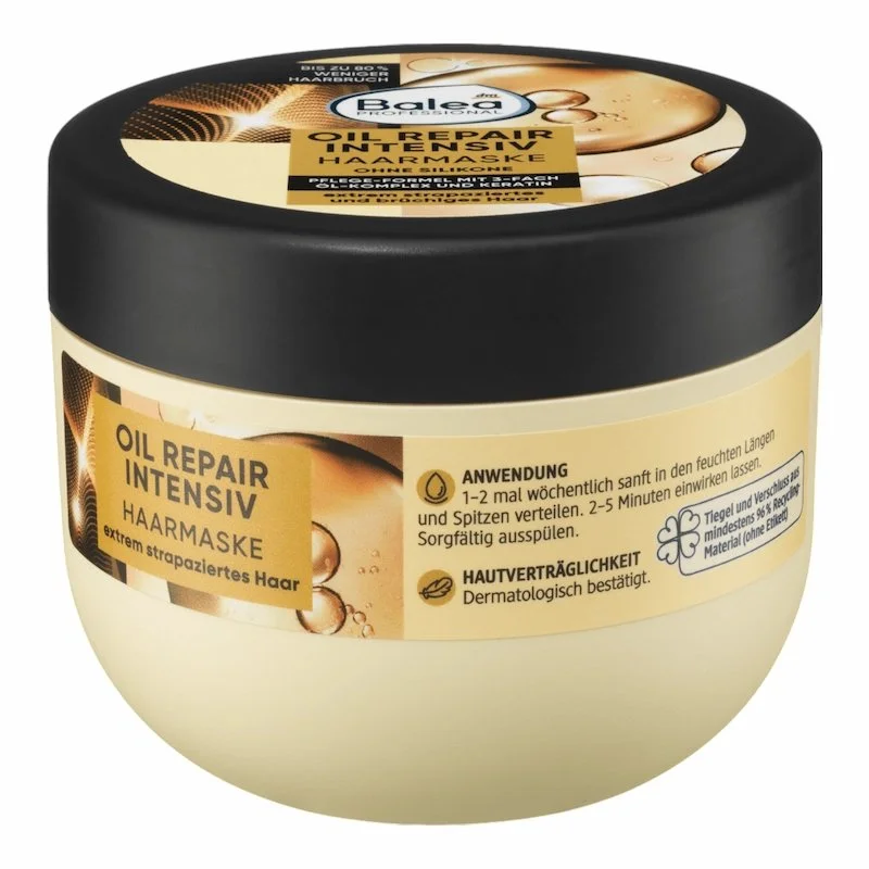 e Balea Masque Capillaire Oil Repair Intensive 300 ml est un soin ultra-nourrissant pour les cheveux secs et abîmés. Enrichi en huile d’argan et en provitamine B5, ce masque capillaire offre une réparation intense, nourrit profondément et apporte douceur et brillance aux cheveux fragiles.